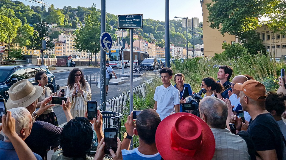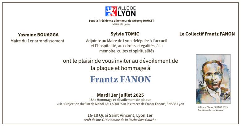 A l’initiative du collectif Fanon à Lyon désireux d’inscrire une trace pérenne du séjour à Lyon (1946-1952) de Frantz Fanon, pour ses études de médecine, de psychiatrie et de philosophie, puis lors de la Libération de Lyon (septembre 1944) sous les ordres du général de Lattre de Tassigny, la ville de Lyon a décidé de dénommer « Place Frantz Fanon » une portion du quai Saint-Vincent dans le 1er arrondissement, au pied de la Croix-Rousse, à proximité des Subsistances.